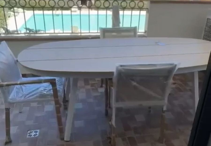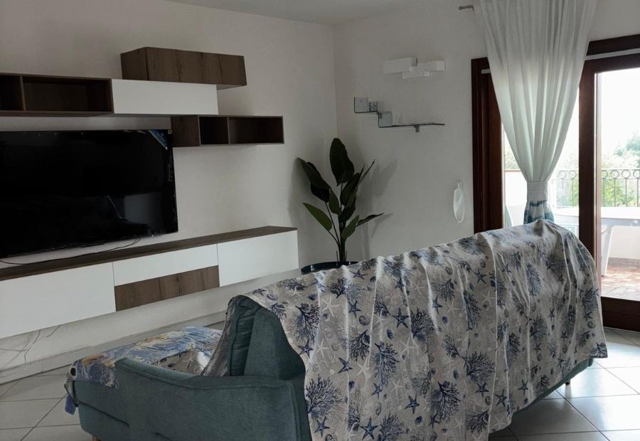 Appartamento nel Residence Borgo dei Mirti posto al piano primo con vista sulla splendida piscina. Composto da una camera matrimoniale, una con letti a castello, soggiorno con angolo cottura e divano letto matrimoniale, un servizio con doccia. Posto auto non numerato, piacevole veranda vista piscina attrezzata per mangiare fuori.