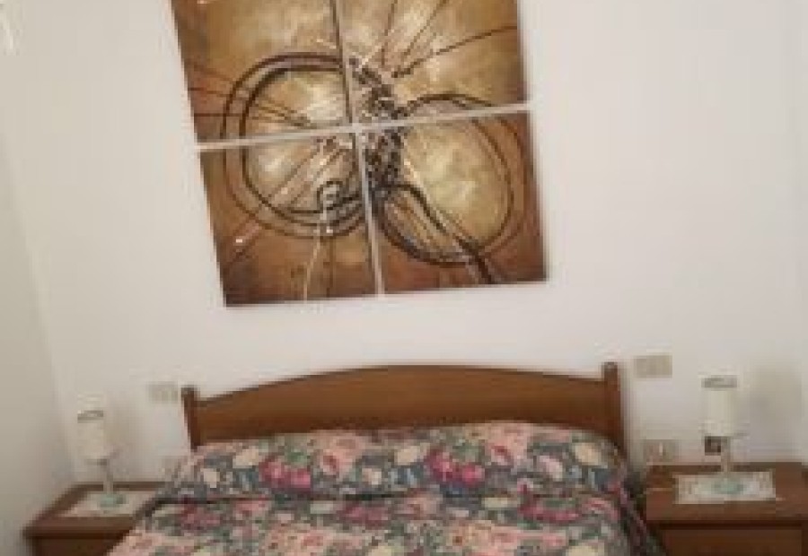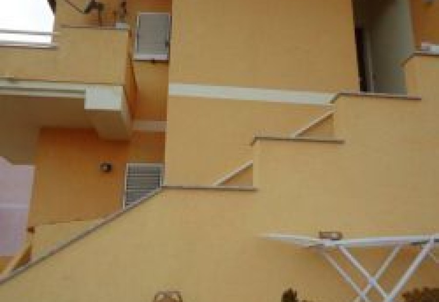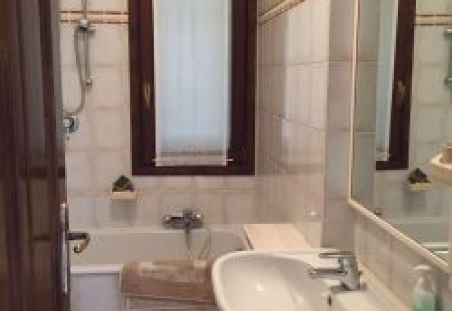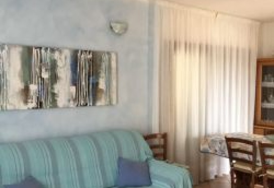 Appartamento posto al piano Primo, con piccola terrazza dotata di tavolino. Panoramico sul paese e la valle di macchia mediterranea. Internamente le dimensioni sono generose, ma pur essendo un quadrilocale, i posti sono limitati a 6. Sono presenti 2 camere matrimoniali più una terza con letto a castello. Il divano in soggiorno non è divano letto. Comodi i 2 bagni.