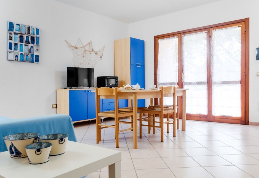 Situato nel verde del villaggio a 900 metri dal mare, raggiungibile a piedi attraverso la pineta, sorge lappartamento G2. Ubicato al piano terra, dotato di giardino, veranda abitabile allestita con tavolo e sedie per pranzare all'aperto. Parcheggio adiacente privato. Lappartamento è dotato di Tv, Lavatrice, asse e ferro da stiro, asciugacapelli, bollitore, tostapane, forno microonde, a richiesta senza costi aggiuntivi seggiolone e lettino per bambini. Sono ammessi animali domestici. Compreso nel prezzo le spese di luce, acqua e gas.